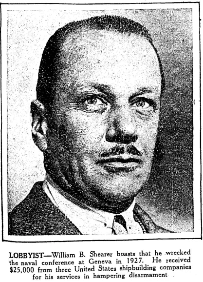 - A TIME magazine article from 1929 that describes his efforts in more detail. Shearer eventually sued the three shipbuilding companies who employed him as a lobbyist: he had been paid $51,230 and claimed that he was owed $257,655.