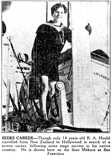 As it turned out, Ronald Sinclair (1924-1992), whose given name was Richard Arthur Hould, had not one career but two in the movies after landing in San Francisco at the age of 12 (not 14 as stated in the photo). Between 1936 and 1942, he appeared in 16 movies as a juvenile, including playing young Scrooge in the 1938 version of A Christmas Carol. In his first films, he was billed as "Ra Hould" before taking his stage name.
