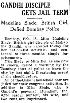 Madeleine Slade (1892-1982) was actually known as Mirabehn or Meera Behn. As part of her work for India's independence, she met David Lloyd George and Winston Churchill, and she was imprisoned again in 1942. She lived in India until 1959 and moved to Austria in 1960, living in the Vienna Woods until she passed away.