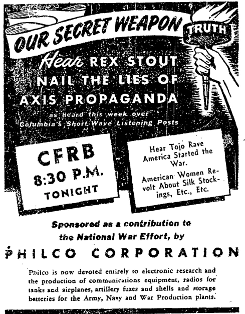 If you were going to hire somebody to broadcast war propaganda, is there a better name than "Rex Stout"?