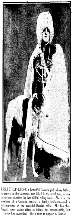 Lilli Streppetoff (and her pet dog) appear to have vanished into history. The only references I could find of her were from other newspapers around this time that were running the same wire service photo.