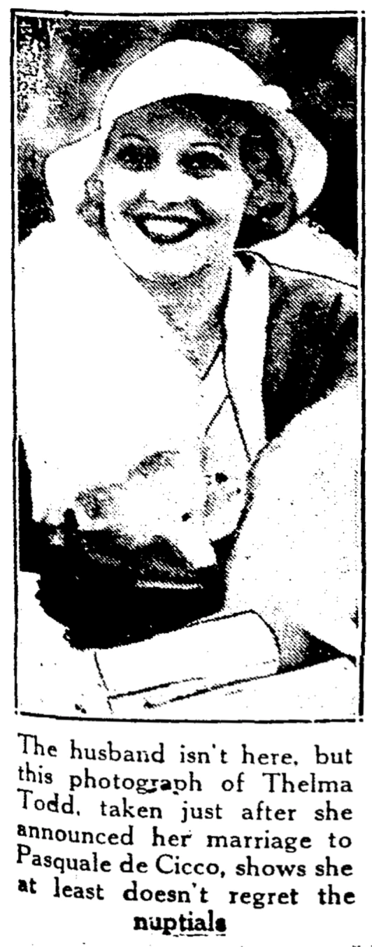 Unfortunately, Thelma Todd (1906-1935) had neither a happy marriage nor a long life:
