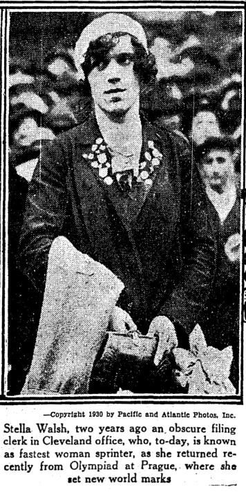 Stella Walsh (1911-1980) turns out to be a very interesting and sadly tragic story. Her given name was Stanislawa Walasiewicz, and her family emigrated from Poland to the United States when she was three months old.
