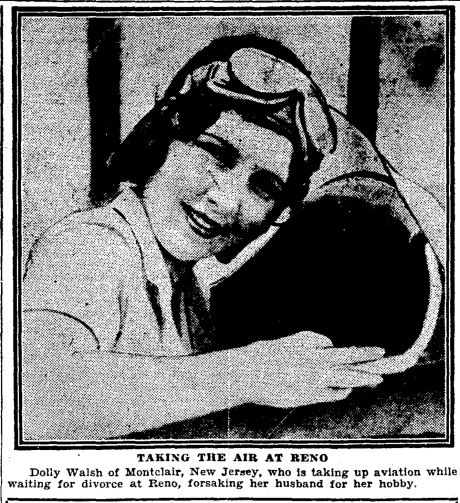 Sometimes, I am able to trace what happened to a person in a photograph, but sometimes I am not. (The caption for a photo often got the name wrong, which doesn't help.) All I know about Dolly Walsh is from this photograph - she was about to divorce her husband and take flying lessons. I searched for everything I could think of, but no luck.