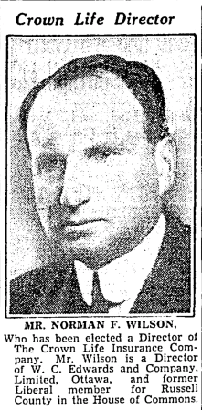 The most noteworthy thing about Mr. Wilson was that his wife, Cairine Wilson, was the first woman ever to be appointed to the Canadian Senate. She later became the first woman to serve as a Canadian delegate to the United Nations General Assembly and the first woman Deputy Speaker of the Senate.