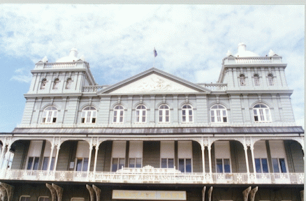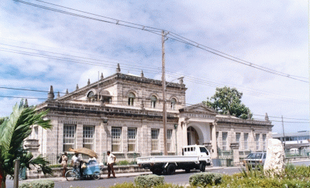 One world-wide constant: the most ornate building in a city is usually a life insurance company office. This is the Bridgetown branch of the Mutual Life Assurance Company. |