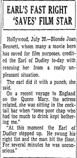 William Ward, the 3rd Earl of Dudley (1894-1969) served two terms in the British Parliament as a Conservative before being elevated to the House of Lords in 1932. He was a widower at the time of the punch described here, as his first wife, Lady Rosemary Millicent Sutherland-Leveson-Gower, died in a plane crash in 1930. He married twice more after that, and allegedly proposed to Mandy Rice-Davies in 1961 when he was 67 and she was 17. He was also stridently opposed to the Sexual Offences Act of 1967, which partially decriminalized male homosexuality, as he claimed that he could not stand gay people.