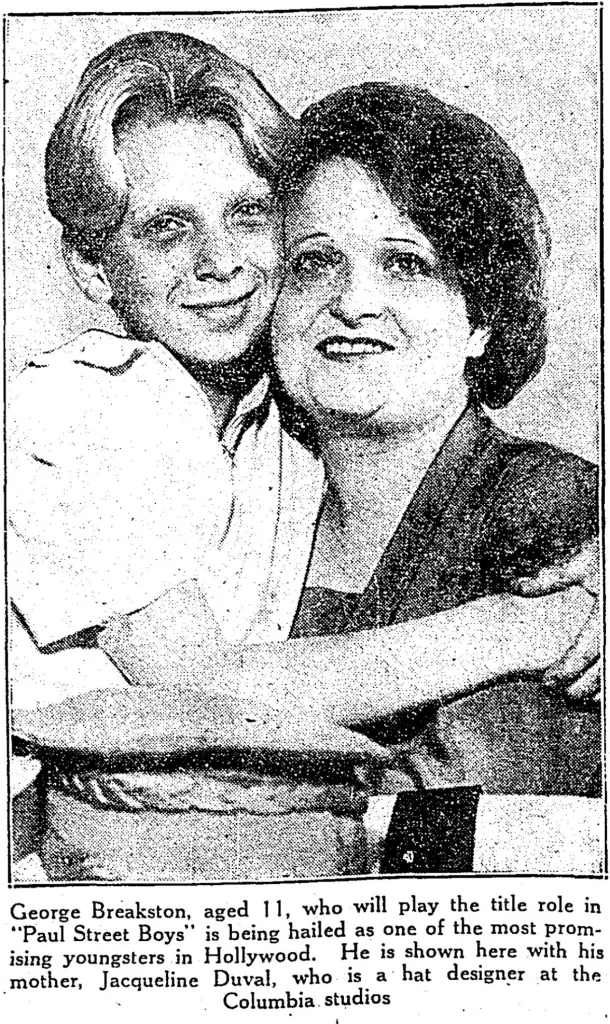 George Breakston (1920-1973) was actually 13, not 11, at the time of this photograph; this appears to have been a deception put forward by the movie studio that was employing him. He started his acting career in radio in 1930, appeared in his first film in 1934, and continued acting until 1942. He appeared regularly as "Beezy" in the Andy Hardy film series.