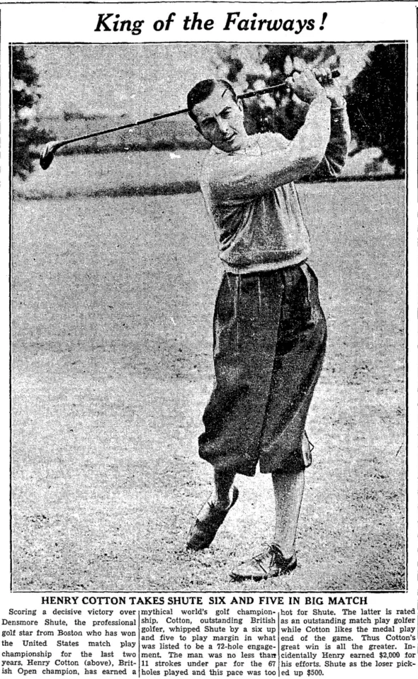 Denny Shute, the American golfer who lost to Cotton, won the PGA Championship in 1936 and 1937; the next golfer to win this tournament in consecutive years was Tiger Woods in 1999 and 2000.