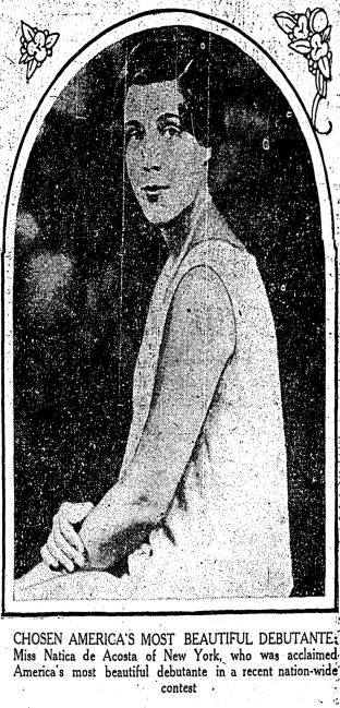 Ms. de Acosta went on to appear in some Broadway plays in 1930. (Though Playbill's entry for her is a bit suspicious, as I doubt that she appeared in two separate plays whose opening night was September 29, 1930. I suppose that it could have been a twin bill.) The New York City Public Library Digital Collections includes a photograph of her in one of these roles.