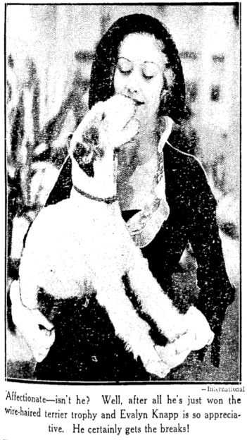 Evalyn Knapp (1906-1981) appeared in a number of B-movies and movie serials in the 1930s, including The Perils of Pauline (1931). Her movie career ended in 1941 except for one uncredited role, after which she focused on her family. She married a doctor, George A. Snyder, in 1934; their marriage lasted until he passed away in 1977.