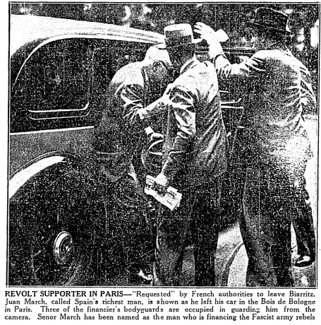 Juan March (1880-1962) was nicknamed "the Rockefeller of Spain". He was the primary financial backer of Generalissimo Francisco Franco and his Spanish Nationalists. During the time of the Spanish Republic, he was jailed before bribing a guard and escaping to Gibraltar. He regained his influence when Franco took power in 1939.