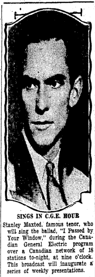 Returning home because of respiratory problems related to the war, Maxted took up singing to strengthen his lungs. He quickly grew prominent, first in Montreal and then in all of Canada, and then signed a contract with CBS in New York in 1930 to sing in five different weekly radio programmes. His health problems forced him to return to Canada later in the 1930s.