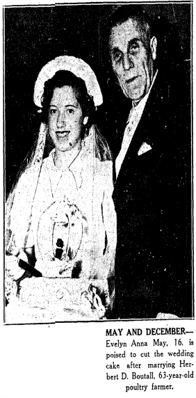 - The couple were from Athol, Massachusetts. Mr. Boutall's first wife had died in 1936 and Ms. May had left school to become his housekeeper before their romance bloomed.