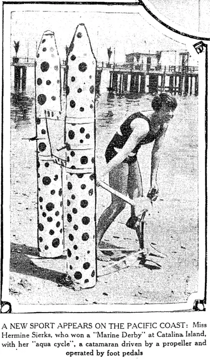 Hermine Sierks, later known as Bobbie Sierks (1910-1978), appears in a number of photographs around this time, including one with a dog (or perhaps goat) and one with a fish. She went on to have a career in films as a script supervisor, with her last credit being Martin Scorsese's Mean Streets in 1973. Her mother, the former Alma Overholt, headed the publicity department for Santa Catalina Island.