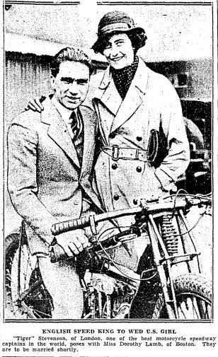 Harold "Tiger" Stevenson (1907-1994) rode competitively for the West Ham Hammers motorcycle speedway team from 1929 to 1939. After the war, he opened a speedway training school, managed a speedway team, and ran a tire dealership.